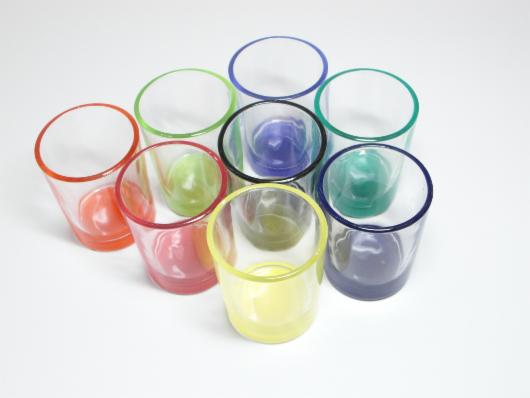 This coloured bottom quality 3oz votive candle holder makes a great personalized wedding gift, promotional item, or party favours. Use this glass as a 3oz shot glass or add a candle for your personalized candle holder. Select your choice of font or artwork from our gallery of clipart and font options with your favorite colours Black, White, Red, Blue, Green, Teal, Hot Pink, Purple, Light Purple, Pink, Lt. Pink, Turquoise, Lt. Blue, Gold, Lime Green, Gray, Orange, Silver and Dark Blue. Metallic Silver and Gold add $0.10 per glass.