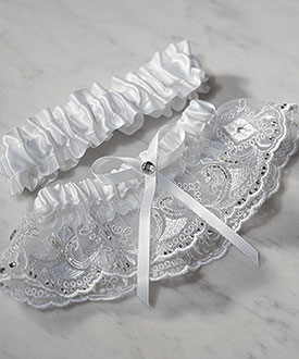 Wedding garters represent a tradition that goes back centuries. As part of your reception celebration consider one of our wedding garter sets, with two wedding garters – one to throw and one to keep. With numerous designs to choose from you're sure to find one of our wedding garters that best matches your personal taste, style, and theme.