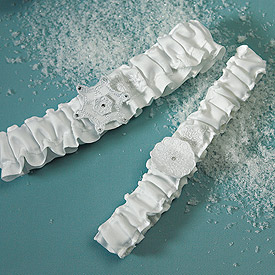 Soft textures are combined with exquisite snowflakes to create the ultimate winter theme garter set.