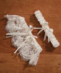 This Garter Set includes one "keepsake" garter and one to "toss". The chic, elegant and regal style of the keepsake garter combines the prestige of royalty with the delicate nature of lace. Pretty yet sophisticated!