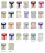 High quality shimmering organza. Edges are hand sewn to form an elegant look when tied into bow form. Measure: 7 1/2" wide x 108" long. Uses: chair cover, wedding, parties, celebrations, graduations, or any special event. Sashes are shipped untied.