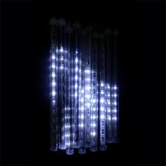 Add a magical falling effect to your decor using 8" long Droplets on a string. Each string features 12 droplets spaced 24" apart and each droplets work independently. Our special design light-timing sequence creates a eye-pleasing slow motion falling raindrop like no other product. Uses 3 AA batteries.