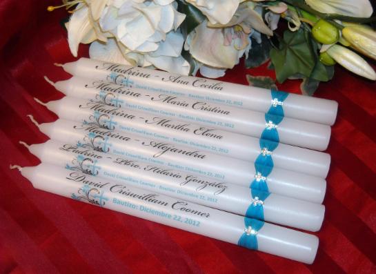 Baptism/Christening tapers, the formal tapers measure 10" long and are available in White or Ivory. You will receive 6 taper candles, designed how you wish. Additional tapers can be purchased, please contact me before placing your order.Not Sold in a smaller quantity. Boy candles printed in Blue - Girl Candles in Pink.