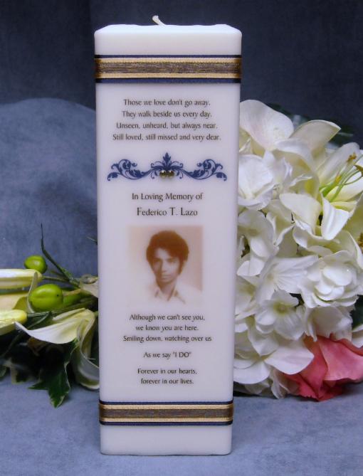 This memorial candle comes in round or square (square candle add $3.00)
