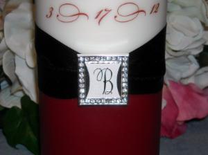 The top portion of the candle is available in white or ivory (please not that the white color is an off white not a pure/snow white). The bottom portion of the candle is available in your choice of color, most all wedding colors available.