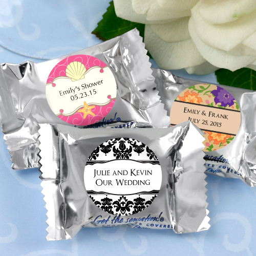 Each individually silver wrapped YORK® Peppermint Pattie (2.5"w X 1.75"h) arrives labeled with your personalized design.