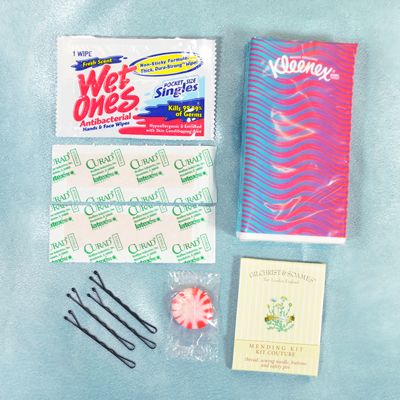 Let your favorite girls prepare for the worst while looking their best with our super chic Bridesmaid Clutch with Survival Kit. With its over the top trend appeal and ultra functional nature, this is one wedding day detail your bridesmaids won't want to go without. Equipped with all the right survival accessories - from band aids and bobby pins to sewing kits and breath mints - and designed in plush matte satin, it's no wonder why this unique gift is such a well anticipated product!