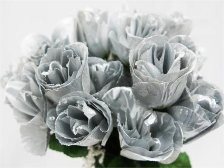 Silk Rose Buds-Silver-84/pk