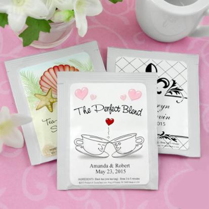 Next to water, tea is the most popular beverage in the world. Personalized individually packaged tea bags present an idea that's right in sync with current consumer tastes and gives bridal couples a new alternative to traditional wedding favors!