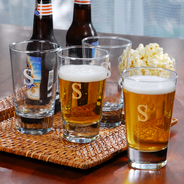 The Personalized Pint Glasses may be engraved with a single, uppercase block initial on each glass at No Additional Cost.