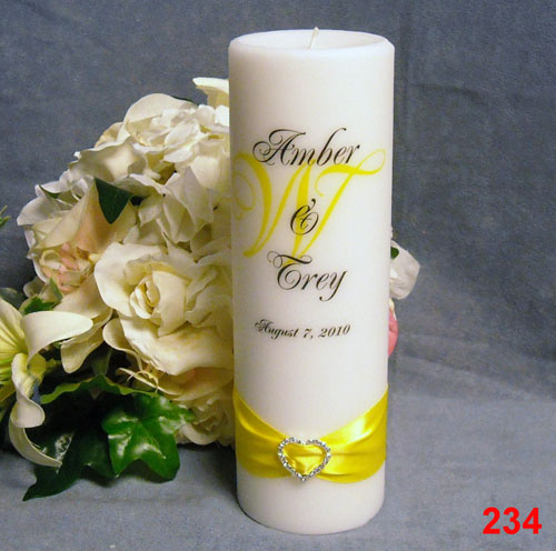 This 9" candle comes printed with your colour monogram along with your colour ribbon to match your colour theme.
